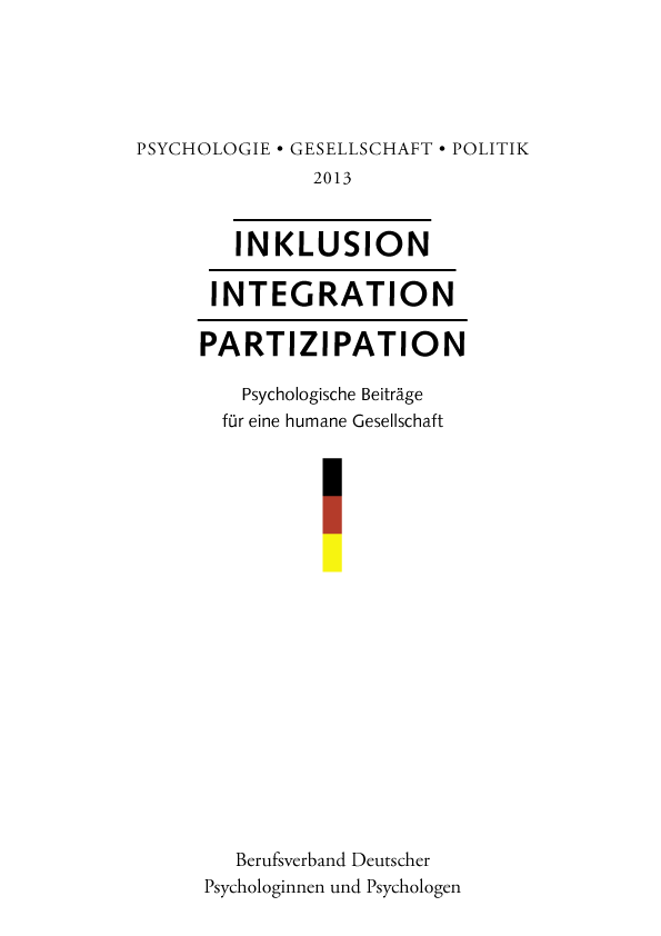 Im neuen BDP-Bericht 2013 „Inklusion – Integration – Partizipation: Psychologische Beiträge für eine humane Gesellschaft“ erläutern namhafte Experten auf 120 Seiten ihre Einschätzungen und stellen dar, welchen Stellenwert die Psychologie in diesem Themenfeld hat und haben könnte. Mechanismen der Ausgrenzung wie Diskriminierung und Mobbing sind gruppenübergreifend ähnlich. Daher gilt es, Frühwarnsignale zu erkennen, um mit Maßnahmen gegenzusteuern und die Aussicht auf nachhaltige Veränderung zu erzeugen, wenn jeder seinen Platz in der Gesellschaft finden soll. Es besteht großer Handlungsbedarf hinsichtlich der Teilhabe und Integration von Menschen mit Einschränkungen, aus einem fremden Kulturkreis, mit einer fremden Religion oder nur mit einem anderen Alter.